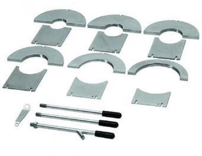 Лівий затискач для косих відводів REMS d 200 мм — це фіксатор, призначений для косих відводів. Складається з 2 затискачів, кожен із 2 редукційними півкільцями. Кільця виготовлені з нікельованої сталі. Фіксатор використовується зі ССM 250KS — машиною для стикового зварювання поліпропіленових труб.
